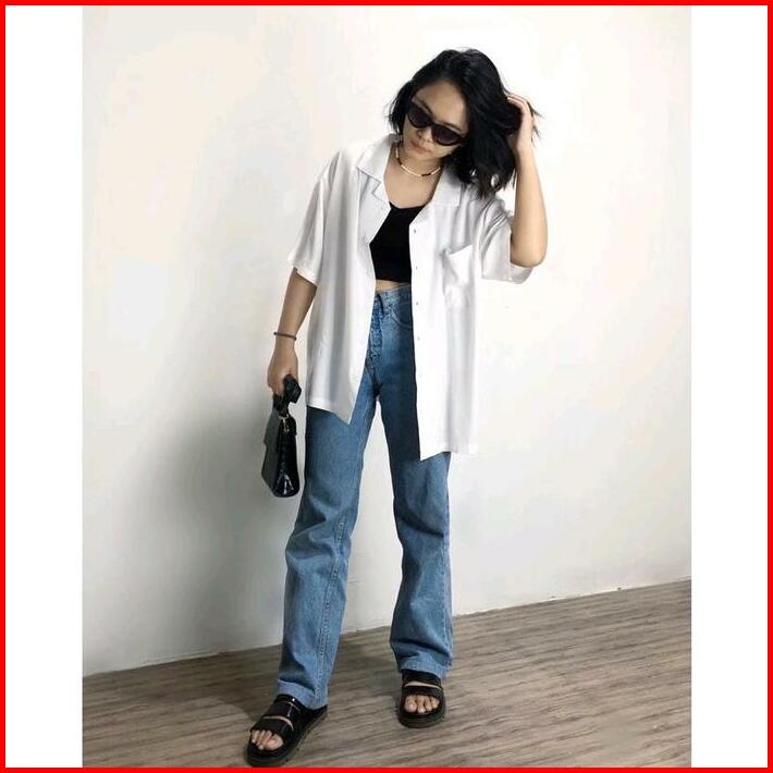 Kemeja Hawai Polos Pria Unisex Putih Casual Kain Katun Santai Formal Trendy Xxl