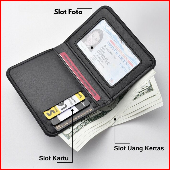 Dompet Lipat Pria Kasato Wa1001b5 Saku Kulit Kartu Atm Hitam Simple Praktis Slot Foto Kekinian Murah