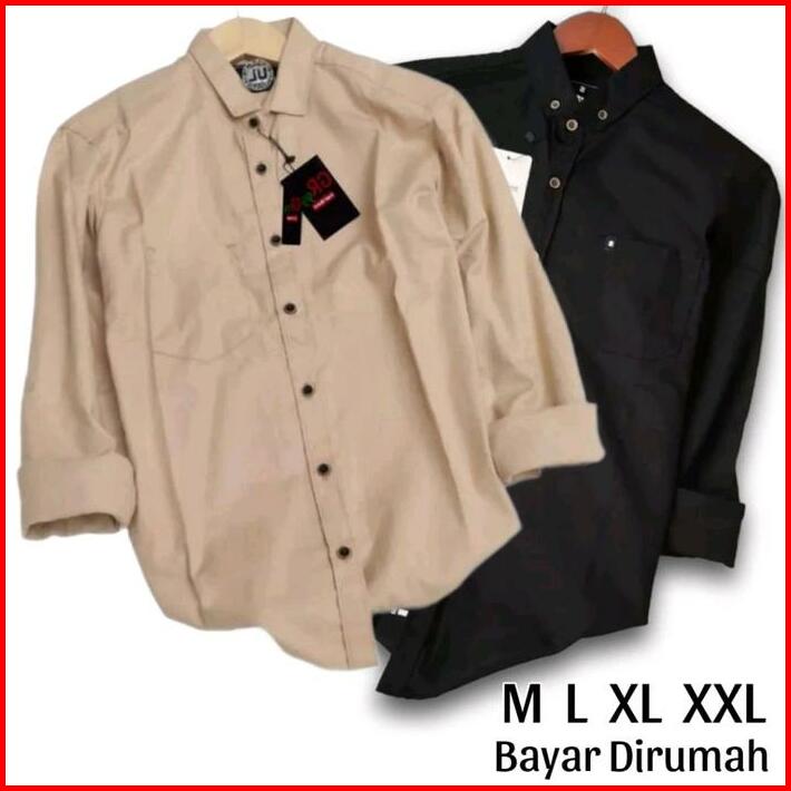 Baju Kemeja Polos Coksu Hitam Pria Lengan Panjang Slimfit Bahan Katun Premium Size M L Xl Xxl Xxxl