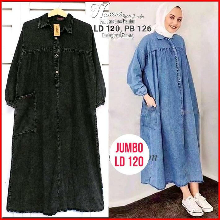 Hanami Jumbo Ld 120 Cm Midi Dress Jeans Tunik Gamis Big Size