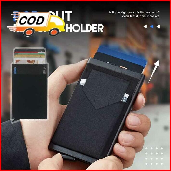 Dompet Kartu Pria Wanita Slim Slider Aluminium Aman Anti Pencurian Rfid Cashless Kredit Card Atm Ktp