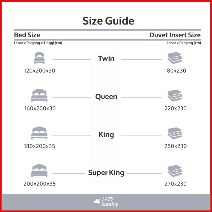 QUEEN 220X230, KING 250X230, TWIN 180X230, S-KING 270X230