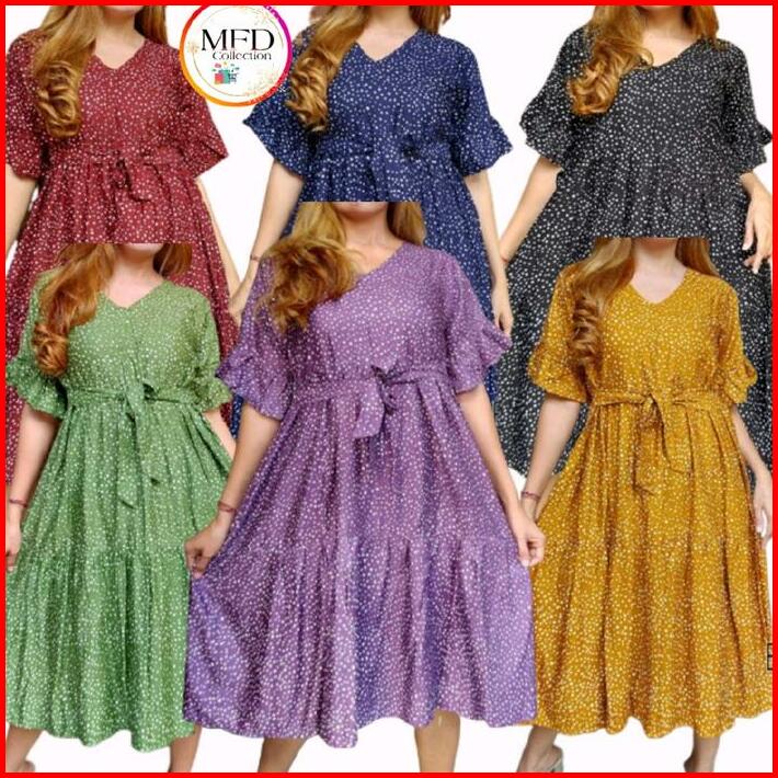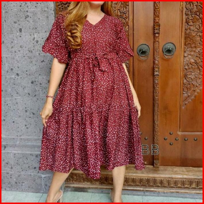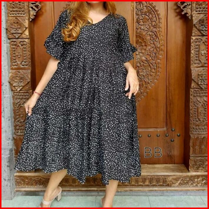 Daster Jumbo Dress Jenima Jumbo Ld 120 Motif Polka Dot Sleting Depan Dress Ibu Hamil Jumbo Tali Samping Baju Busui Daste