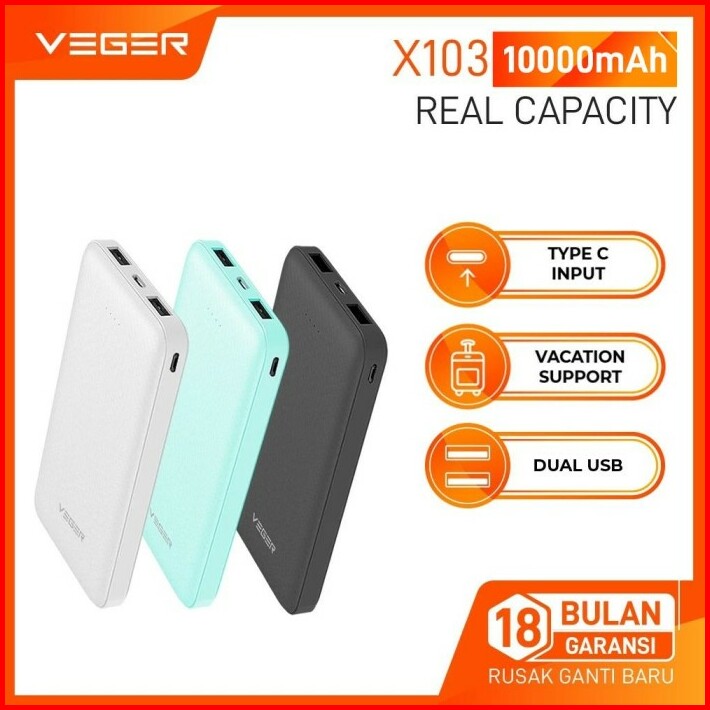 Veger Powerbank X103 10500mah 2.4a Slim 2 Ports Usb Output Original