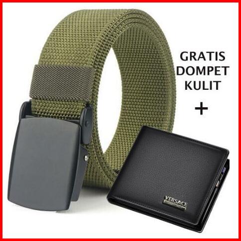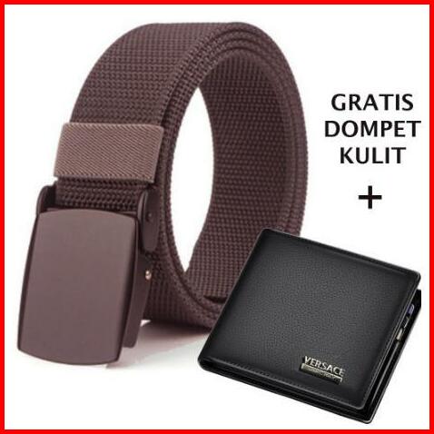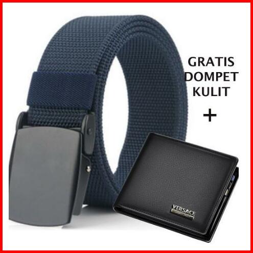 Ikat Pinggang Pria Kanvas Anti Metal Detector Bonus Dompet Kulit