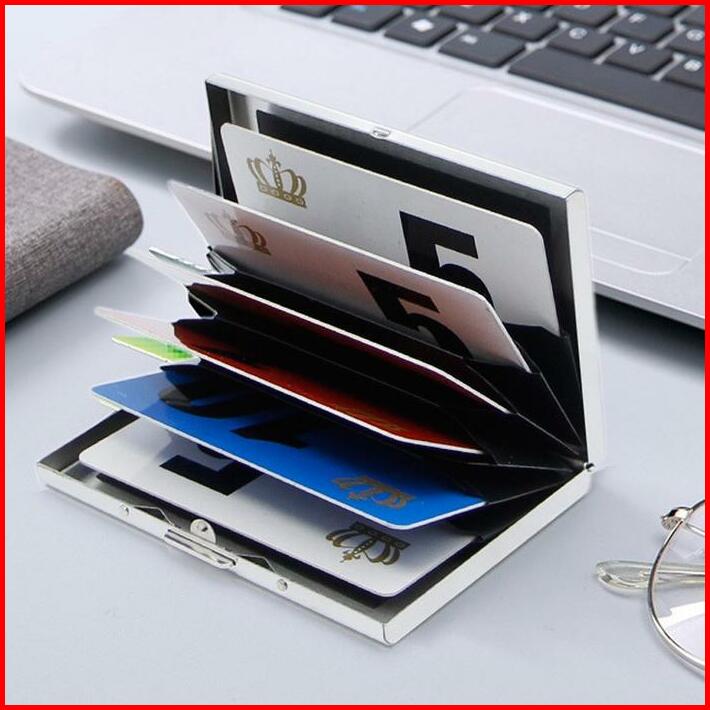 Dompet Kartu Atm Slim Aluminium 6 Slot Rfid Anti Magnet Anti Gores Kotak Penyimpanan Kartu Kredit Pria Wanita