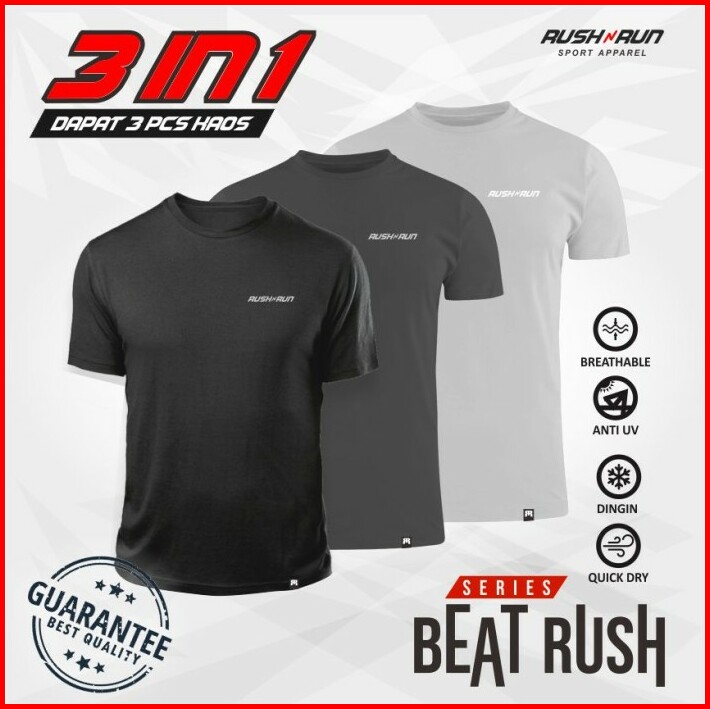 Paket 3 Pcs Kaos Dry Fit Men Baju Olahraga Running Lari Gym Tee Pria