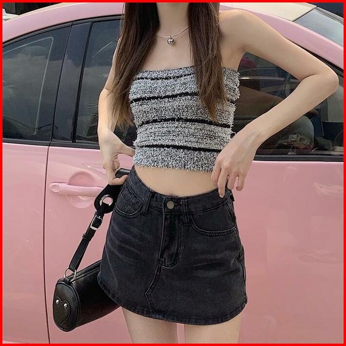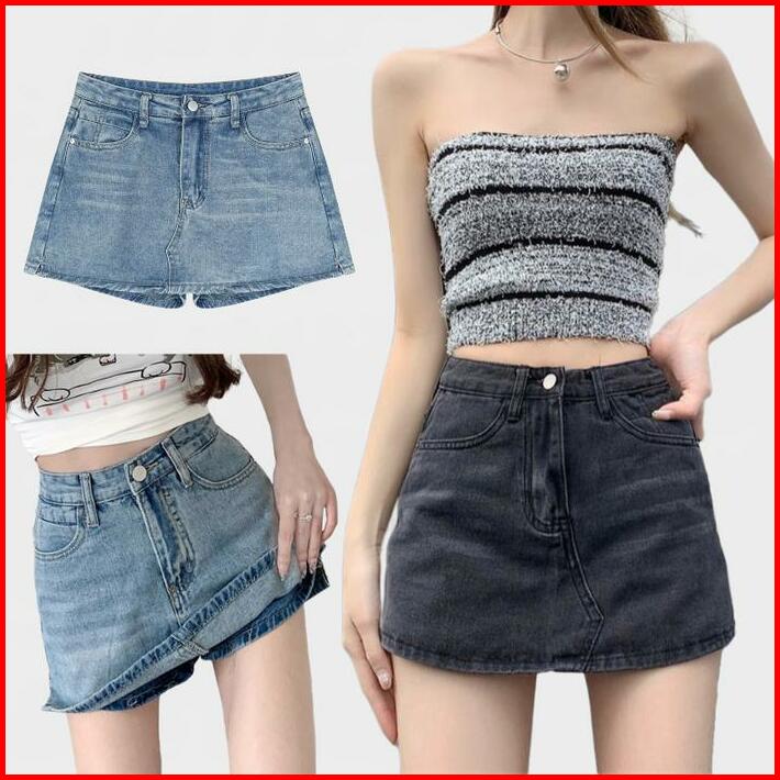S-6xl Rok Pendek Denim Pinggang Tinggi Untuk Wanita Kulot Modis Gaya Korea