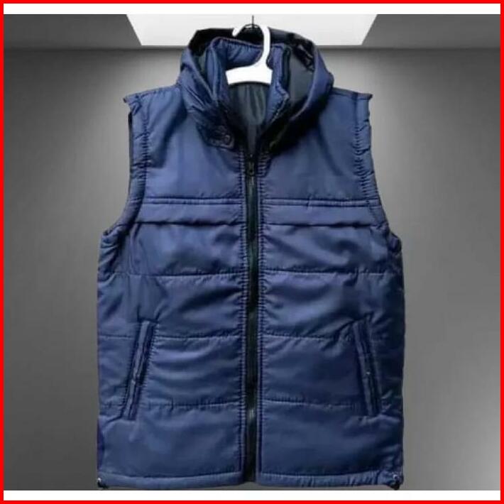 R-gins Jaket Rompi Parasut Pria-rompi Vest Rompi Kembung Fashion Casual Keren Hitam Navy Tebal Motor