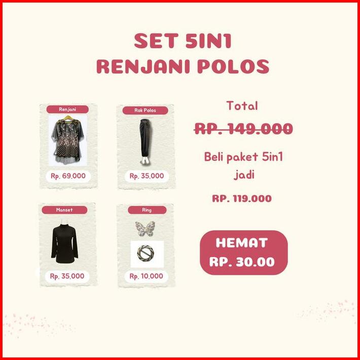 Paket 5in1 Renjani Vest Oneset Brukat Tile Garden Untuk Kondangan Wisuda Pesta Hijab Look Simpel Elegan Mewah Tersedia 9