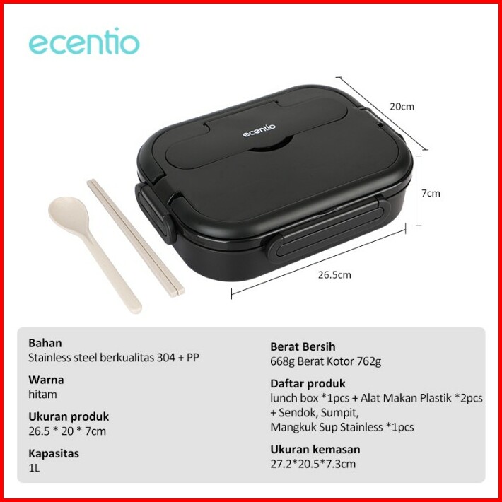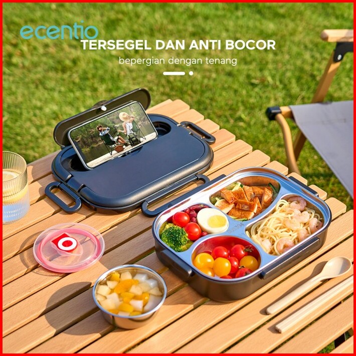 Ecentio 1l Kotak Makan Stainless 304 Tempat Makan Lunch Box 4sekat
