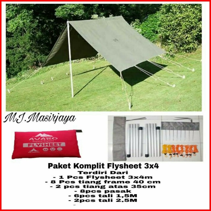 Flysheet 3x4 Tiang Frame Pasak Tali Paket Komplit