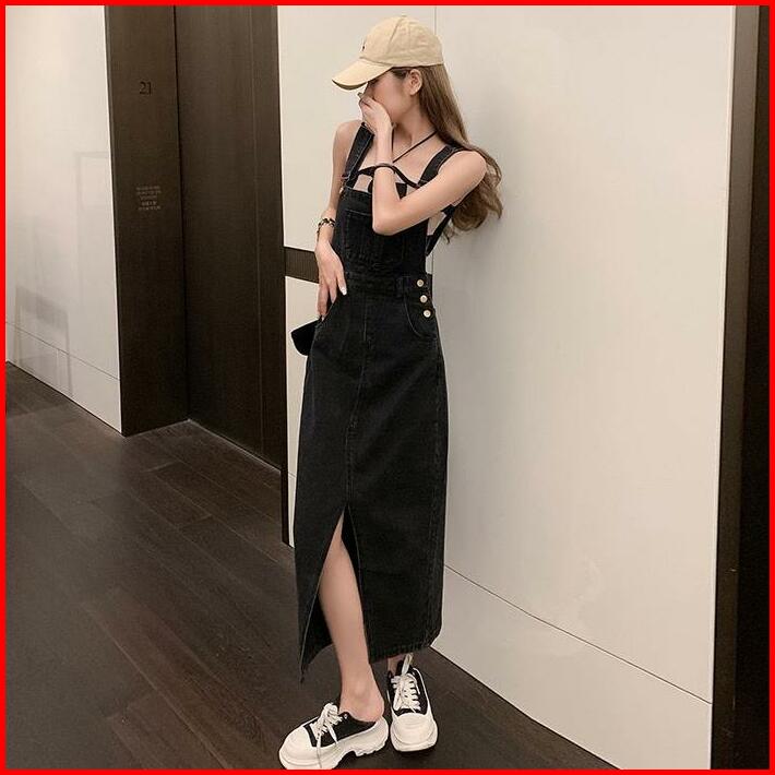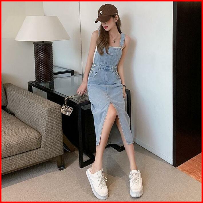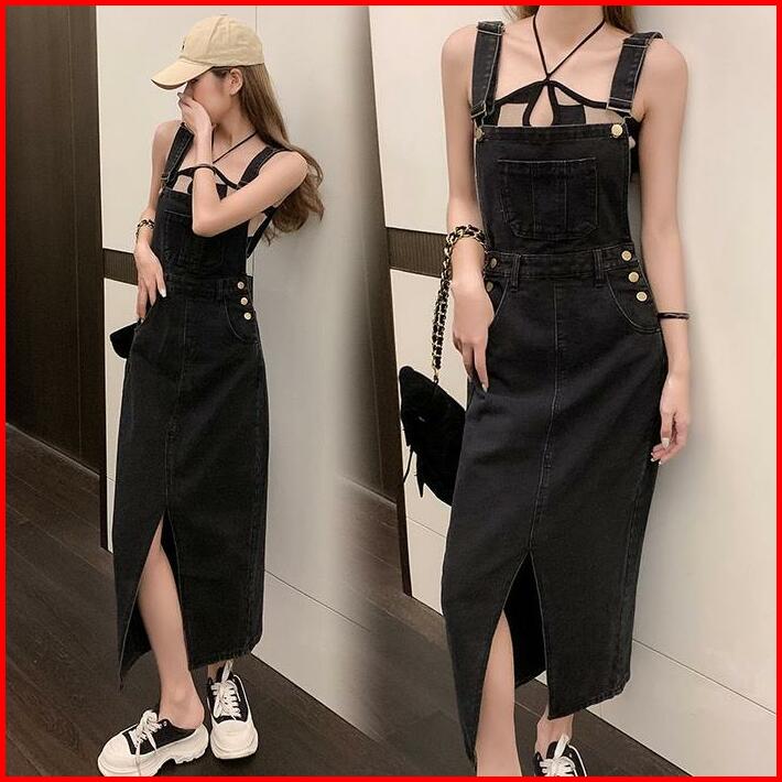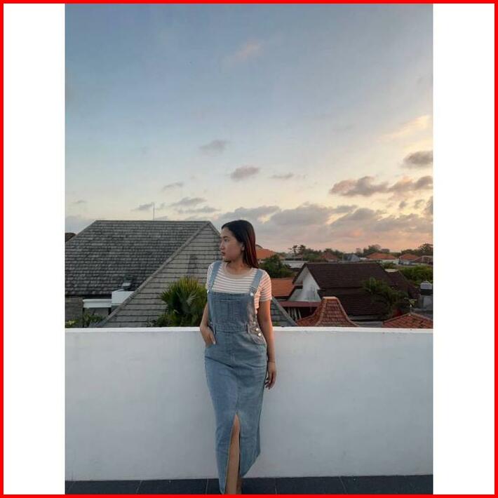 Jumpsuit Rok Jeans Wanita Overall Skirt Denim Rok Belahan Tengah W.p 8856-jp012