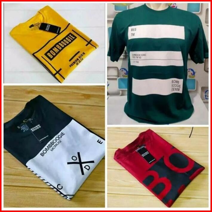 Paket 4 Pcs Baju Kaos Bombogie Atasan Pria Dan Wanita Lengan Pendek Qualitas Semi Katun Premium-kaos Terpopuler Distro O
