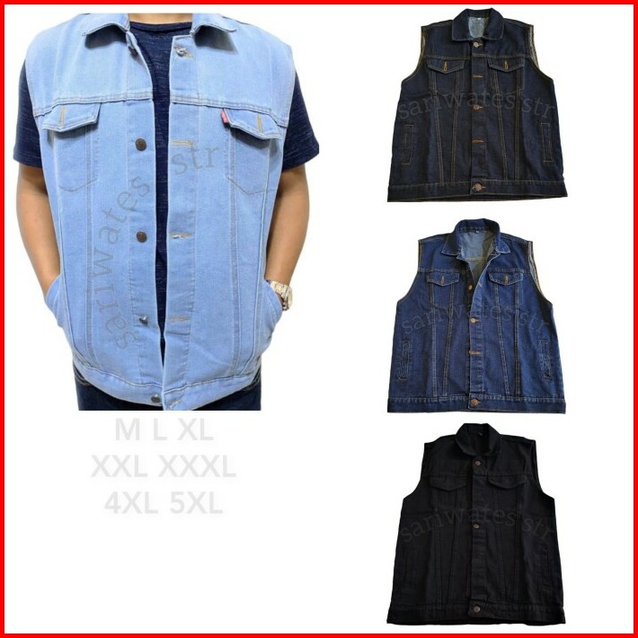 Rompi Jeans Big Size Vest Jumbo Xxl Xxxl Xxxxl Jaket Jins Denim Pria