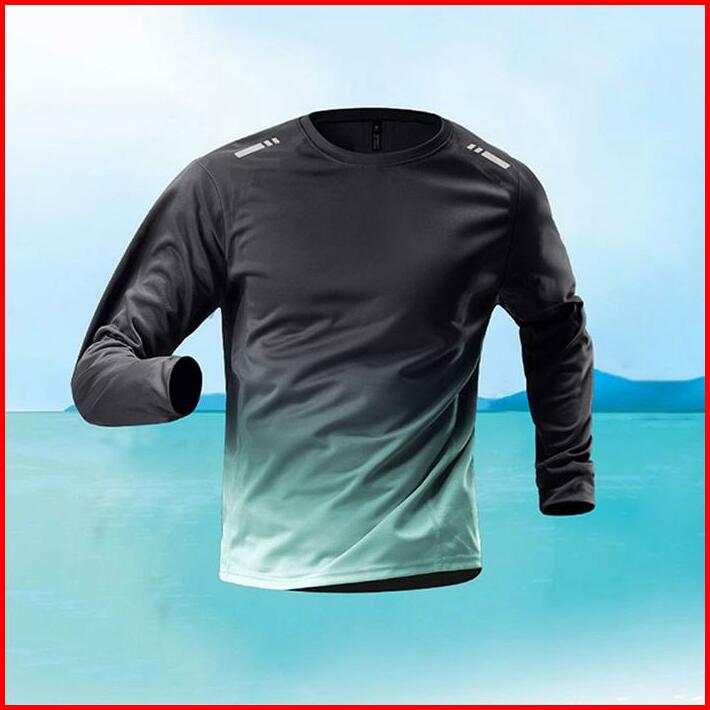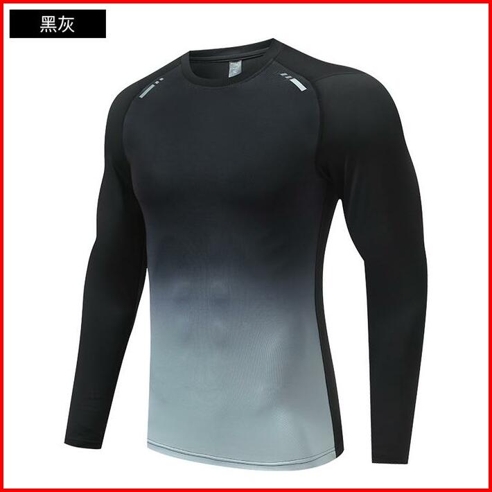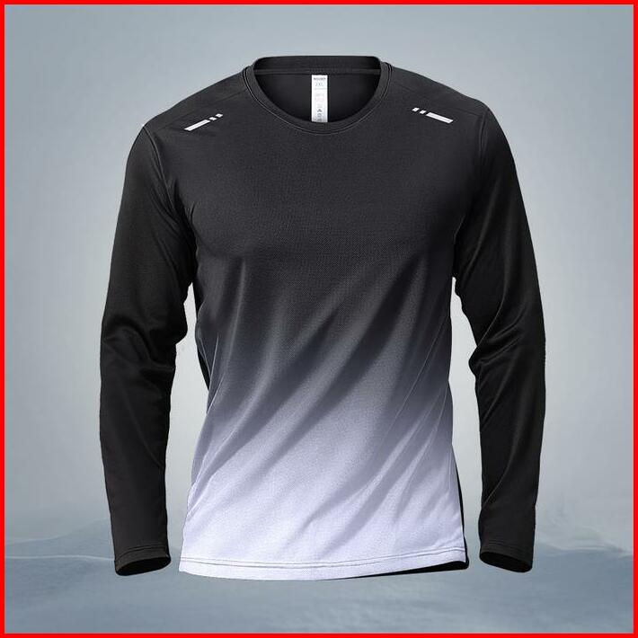Kamb Kaus Leher Bulat Lengan Panjang Pria Gradien Asli Lari Kebugaran Kasual Cepat Kering Bersirkulasi Gaya Baru Sport