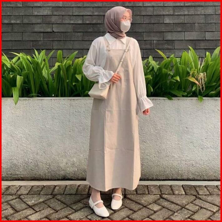 Anya Overall Wanita Baju Kodok Dress Jumsuit Rok Remaja Panjang Katun Jumpsuit Hitam Casual