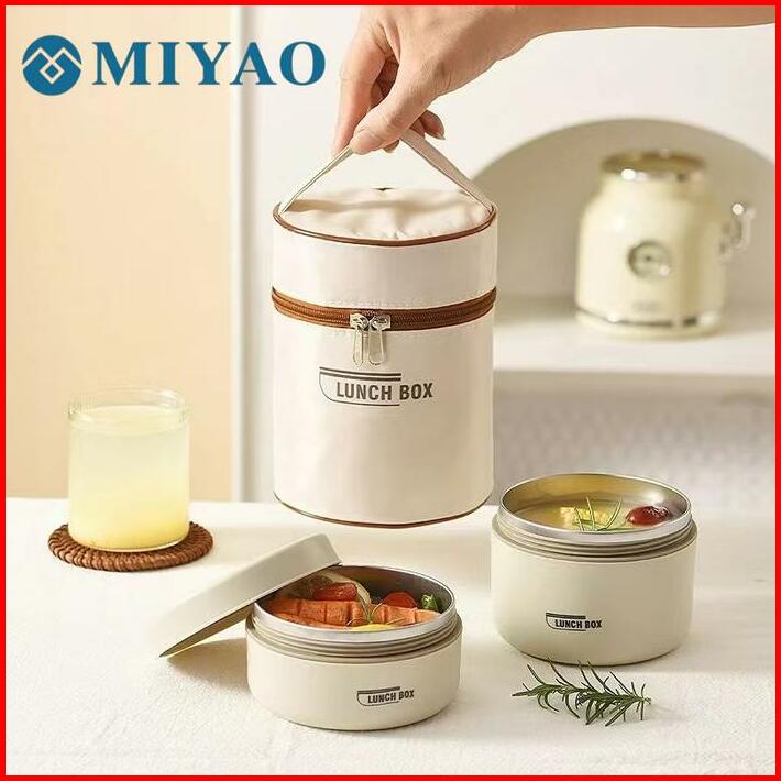 Celyhome Miyao Kotak Makan Portable Tahan Panas Container Sealed Round Stainless Lunch Box Tahan Bocor Kotak Makan 1 Set