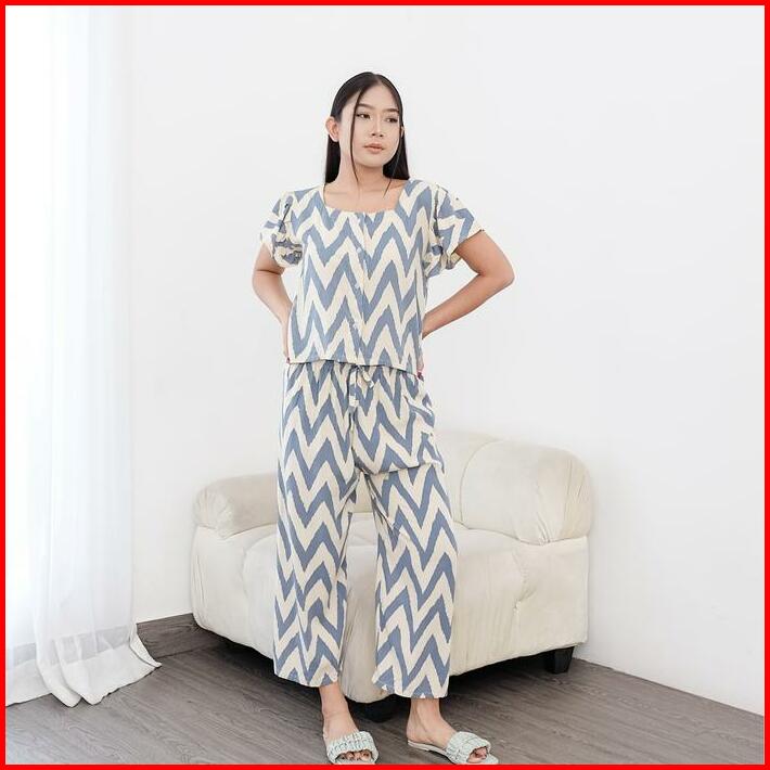 Setelan Wanita Kekinian Dewasa Bahan Rayon Set Caca Motif Sizag Premium Nyaman Santai Baju Celana