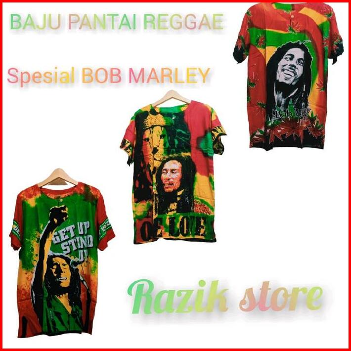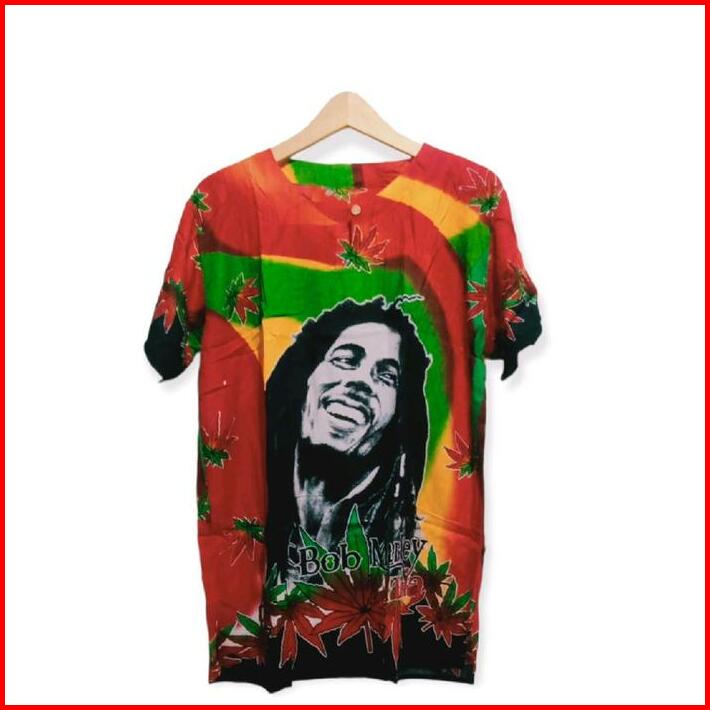 Kaos Pantai Reggae Kancing Baju Rayon Variasi Motif Atasan Reggae Baju Bobmarley Pria
