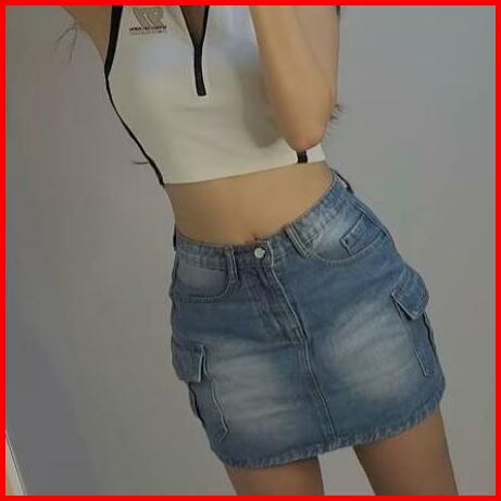 Rok Cargo Pendek Mini Jeans Bodycon Pas Badan Karet Pinggang Wanita Casual Korean Style Santai Dewasa Celana