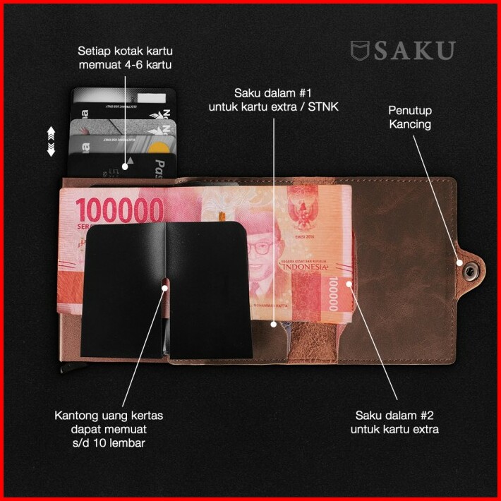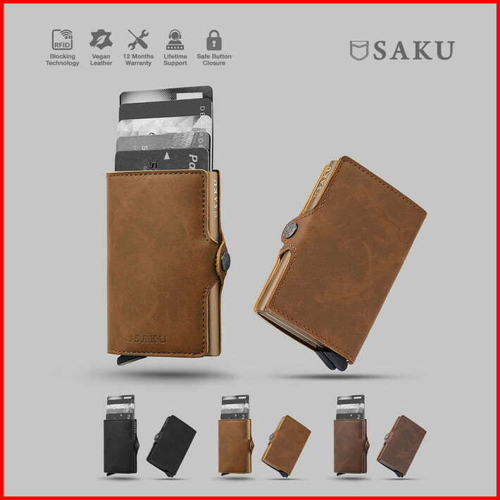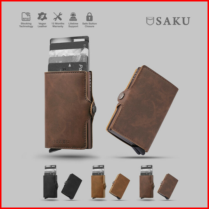Saku Dompet Kartu Pria Wanita Smart Wallet Card Holder Rfid Kulit Blck