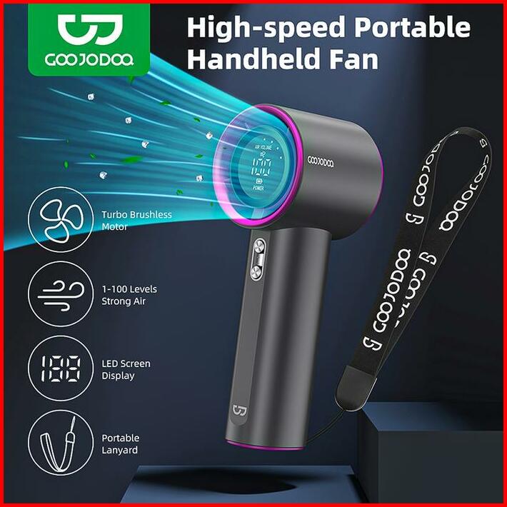 Goojodoq Gfs001 High-speed Portable Handheld Fan 4000mah Mini Kipas Strong Wind 100 Gear Wind Speed Kipas Angin Digital
