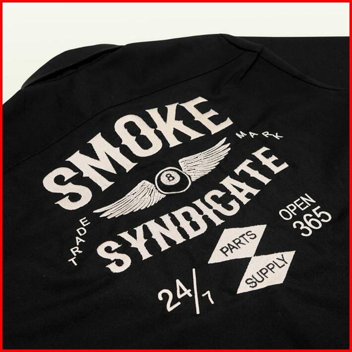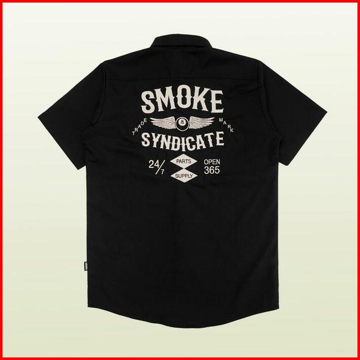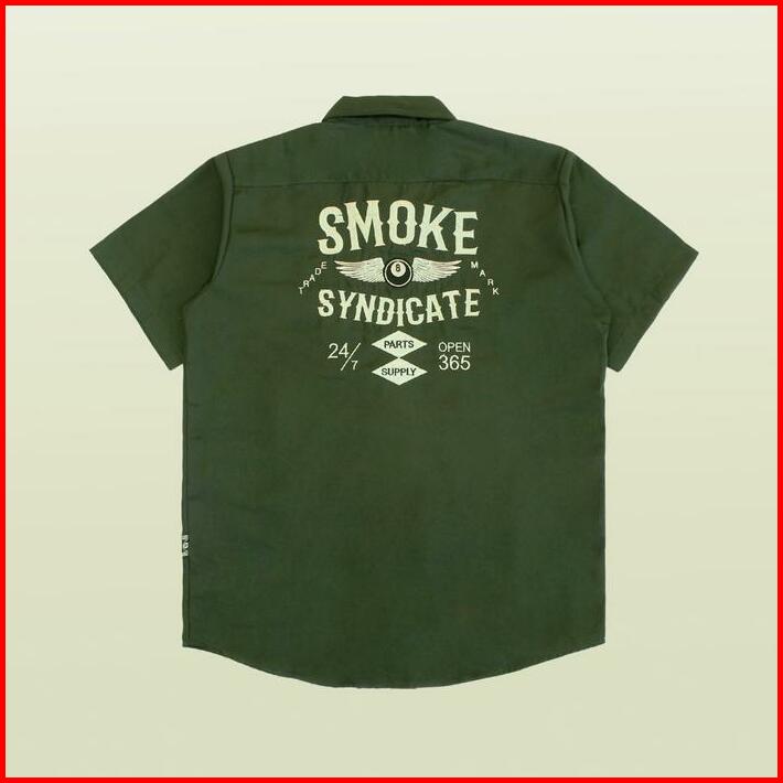 Smoke Workshirt Kemeja Ball Hitam Abu Tua Army Kain Nyaman Casual Pria Hitam Slim Fit Motor Outdoor Casual Kerah Kerja F