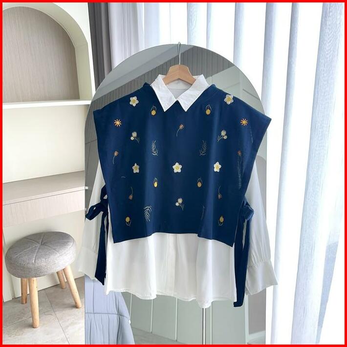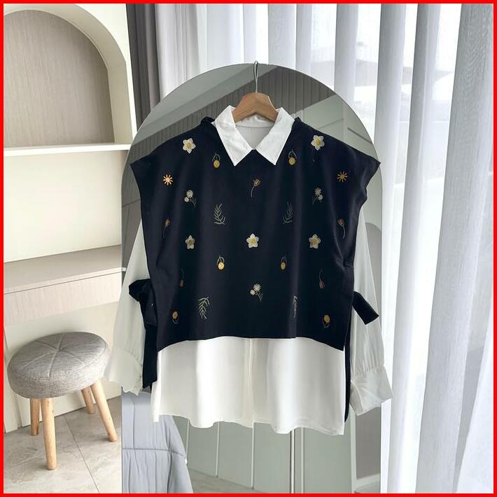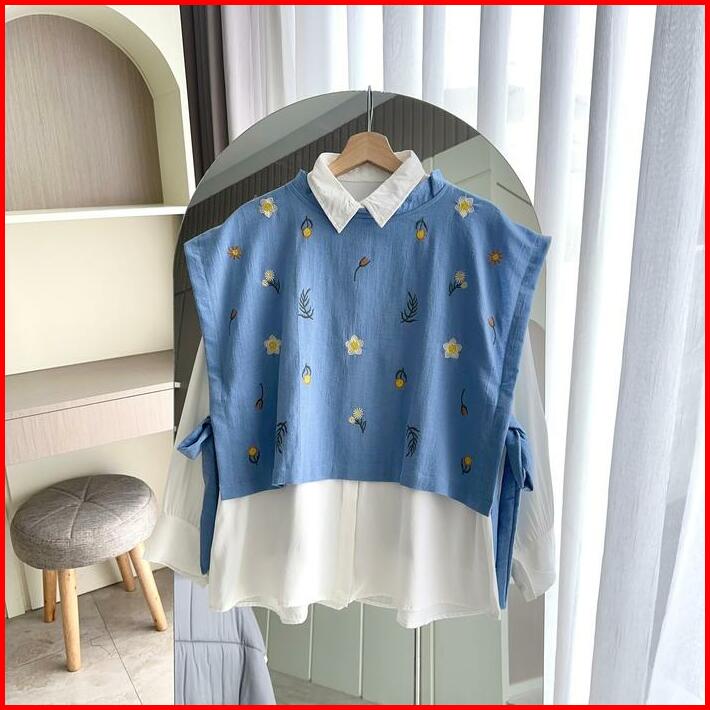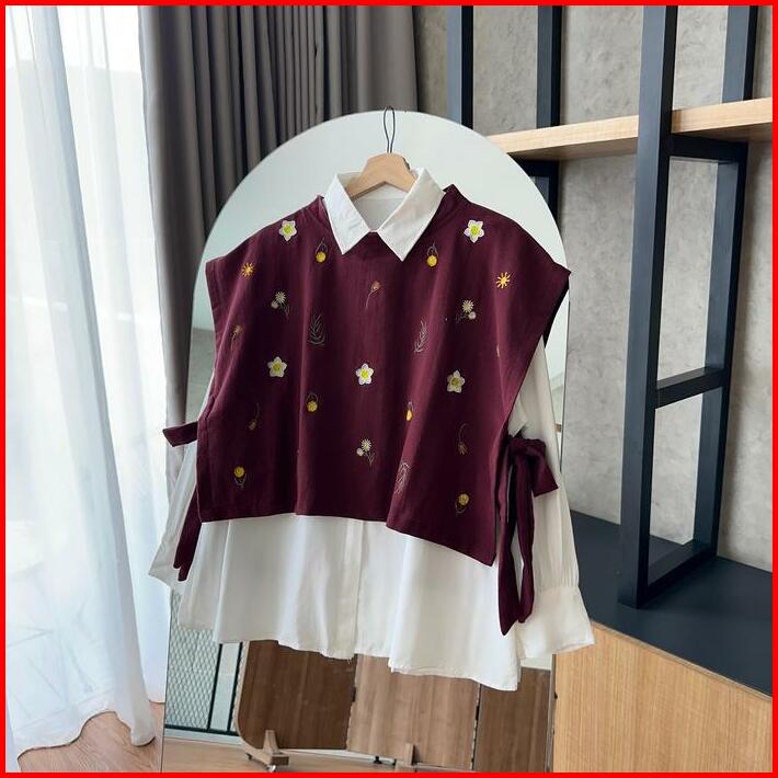 By.hana 334 Vest Linen Bordir Set Kemeja Atasan Panjang Wanita Baju Motif Rayon Variasi Twill
