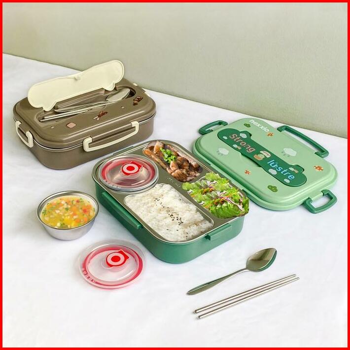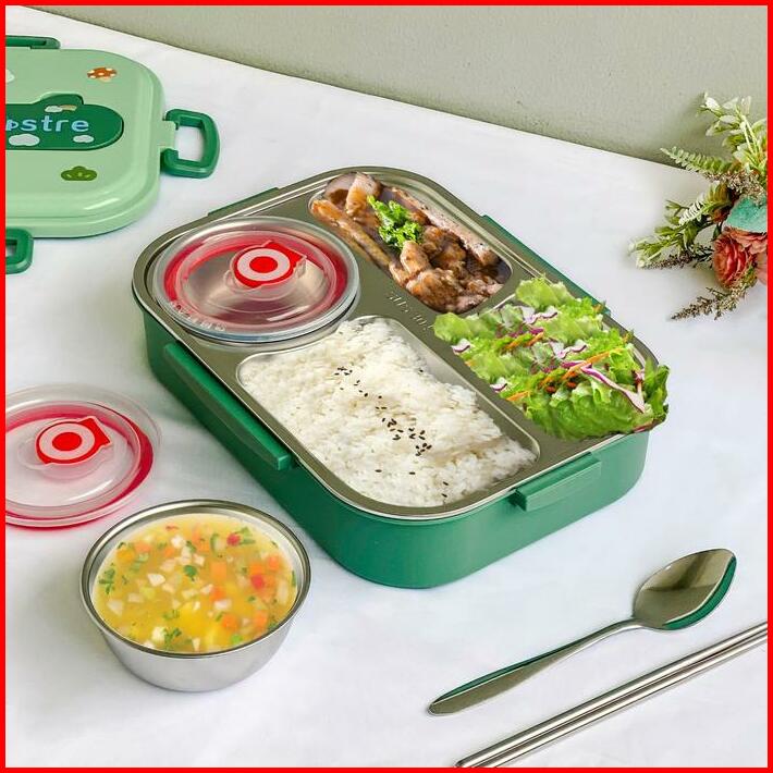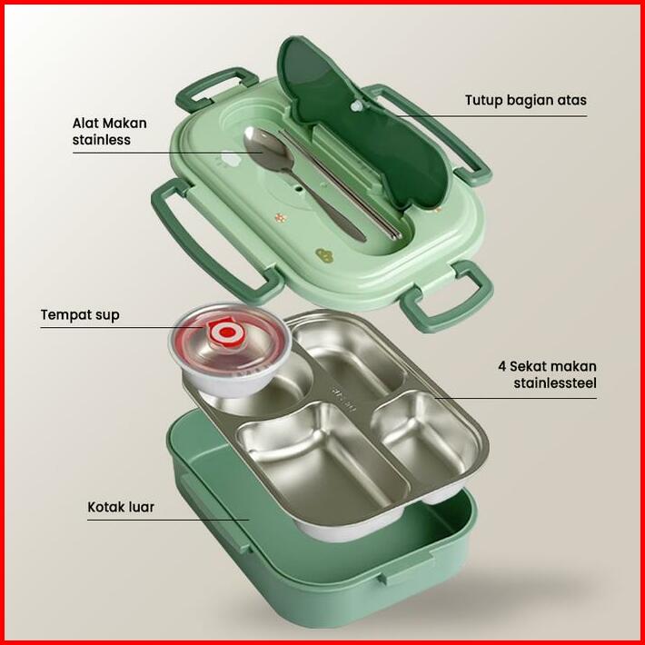 Lunch Box Kotak Makan 3 Sekat 4 Sekat Stainless Steel Kotak Makan Anak Lunch Box Anti Tumpah Anak Free Lunch Bag Kotak M