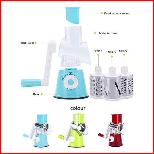 Shenar Parutan Pengiris Pemotong Putar Buah Sayur Dan Bumbu Manual 3 Pisau 1 Handle Serbaguna Alat Dapur Peralatan Multi