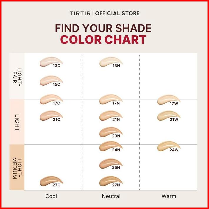 17C PORCELAIN, 21N IVORY, 21W NATURAL IVORY, 23N SAND, 24N LATTE, 24W SOFT BEIGE, 25N MOCHA, 27N CAMEL, 29N NATURAL BEIGE