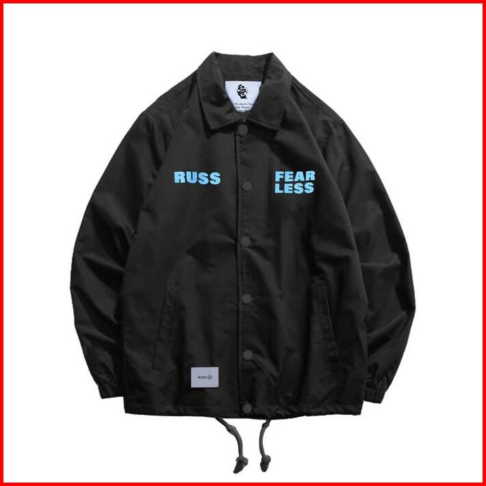 Russ Jacket Coach Pria Fearless Black Up To Big Size Sablon Nyaman Distro Jaket Keren Hitam