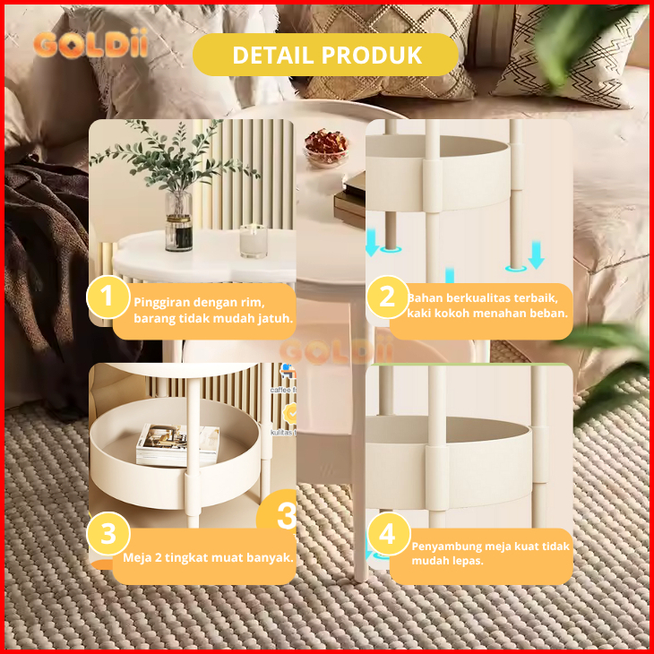 Goldii - Meja Kopi Minimalis Portable Meja Bulat Ruang Tamu Sudut Rumah Meja Kecil Modern Berkualitas