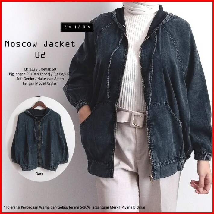 Jaket Jeans Hoodie Oversize Wanita Resleting Depan Moscow02