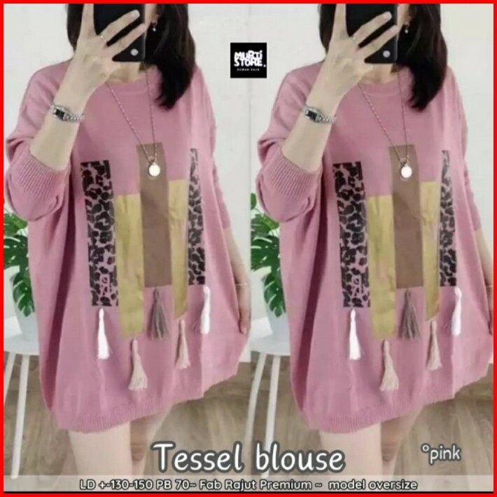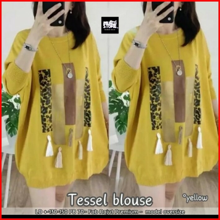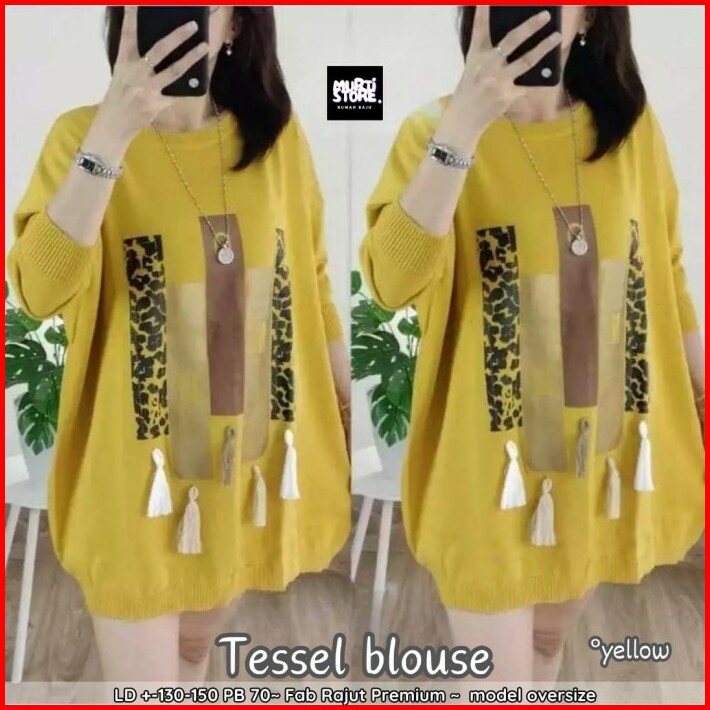 New Tessellle Rajut Blouse Jumbo Baju Atasan Wanita Big Size Modis Casual Lucu Kekinian