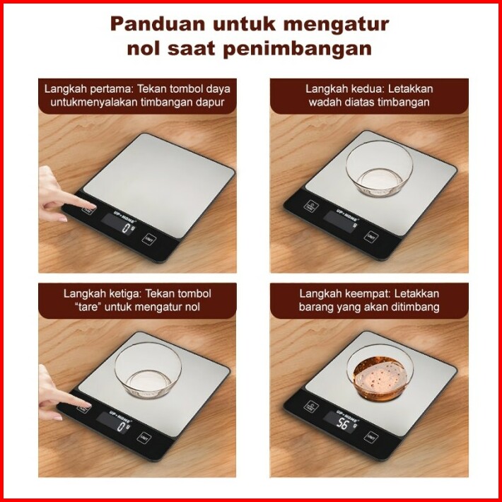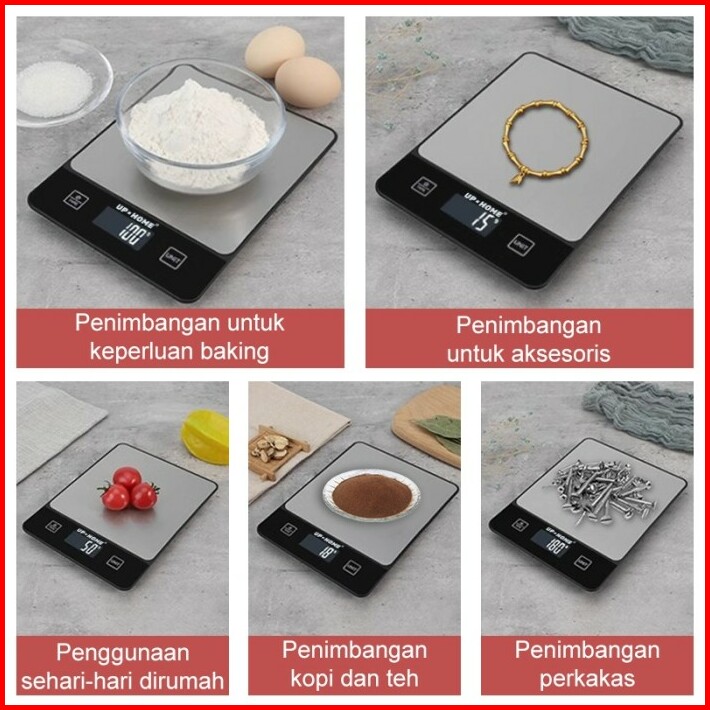 Uphome Timbangan Dapur Digital 10kg 1g Stainless Steel With Tare 5 Mode G Kg Oz Lb Ml Timbangan Kue Timbangan
