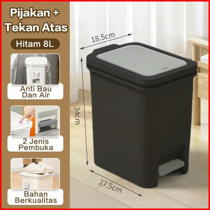 Halu Tempat Sampah Injak 8l Tong Sampah Plastik Tertutup Trash Bin Kotak Sampah Dapur Kamar Mandi Ruang Tamu Hsb791