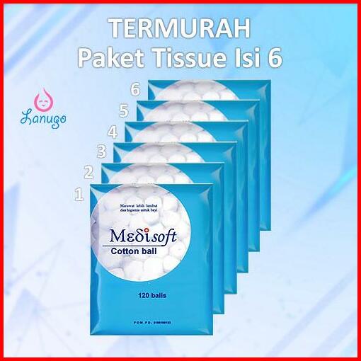 Paket 6 Pcs Cotton Ball Medisoft Biru 75 Gram