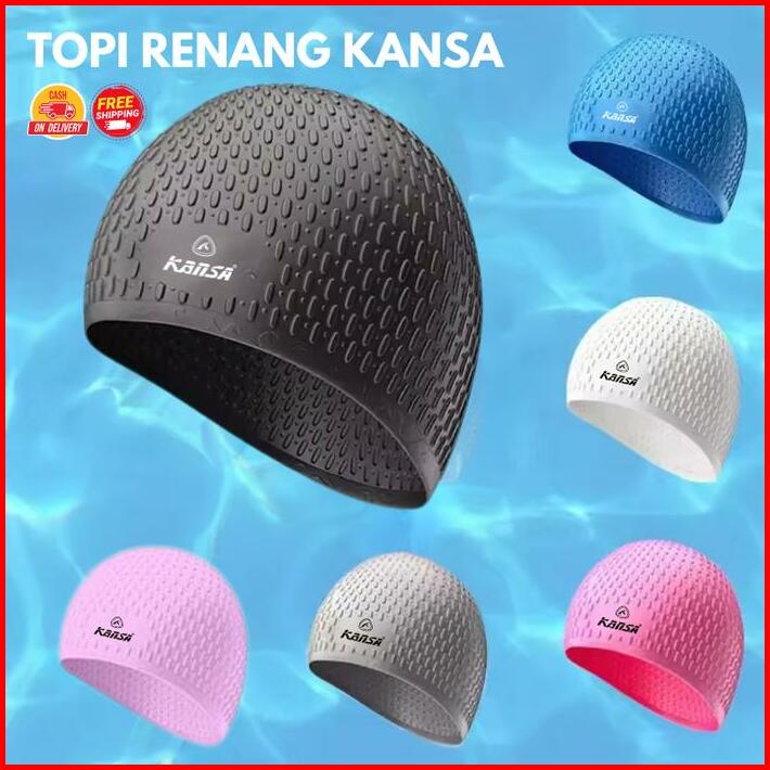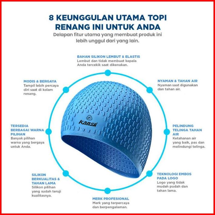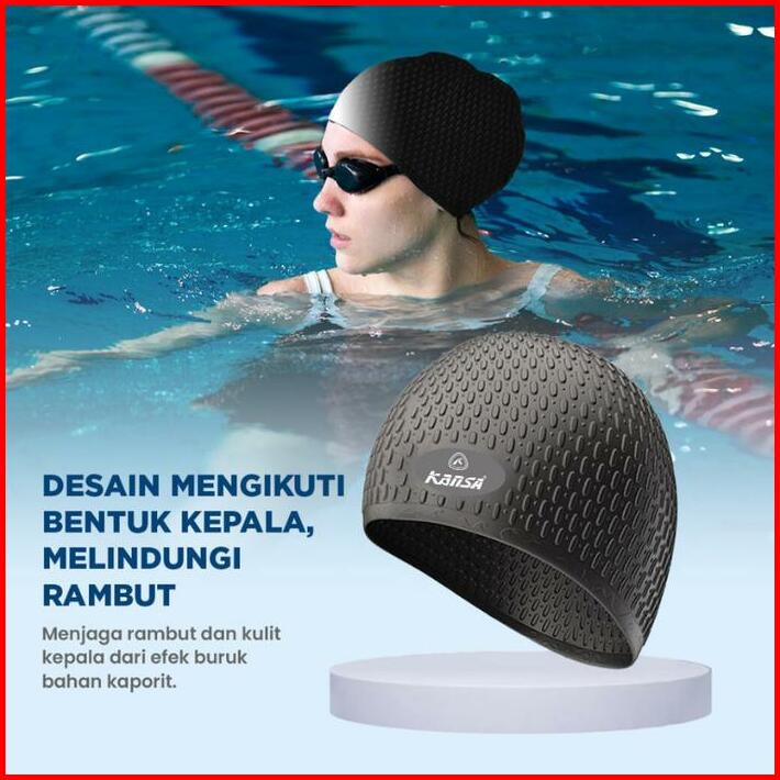 Kansa Topi Renang Dewasa Silicone Lentur Anti Air Pelindung Rambut Nyaman Flexsible Berbagai Motif