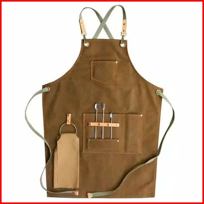 Monolog Custom Canvas Leather Apron Celemek Kanvas Barista Waiter