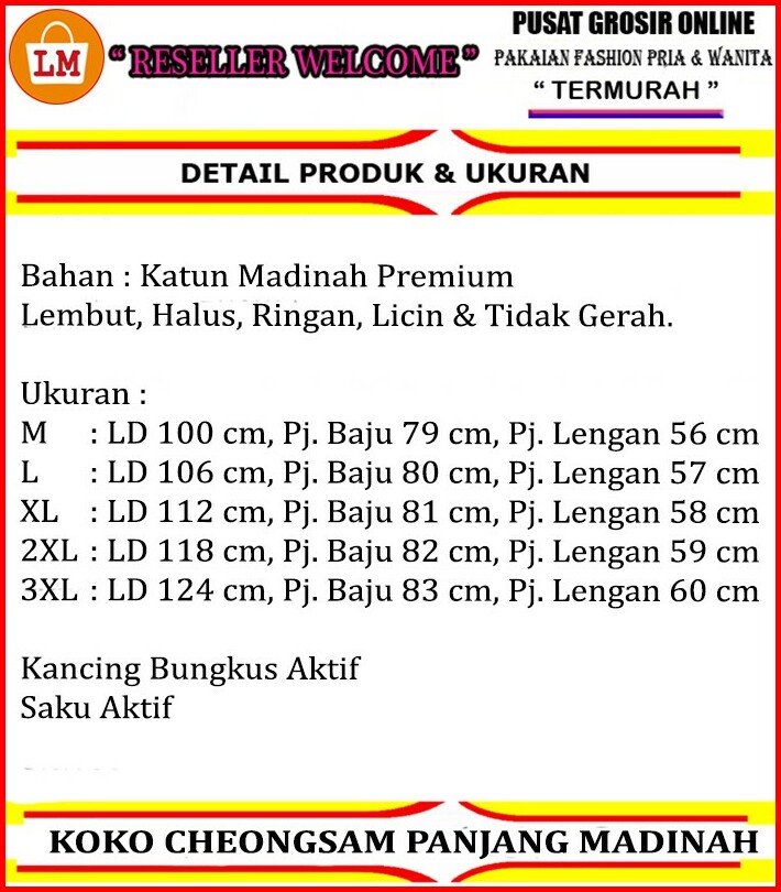 Baju Koko Pria Muslim Cheongsam Ip Man Panjang M