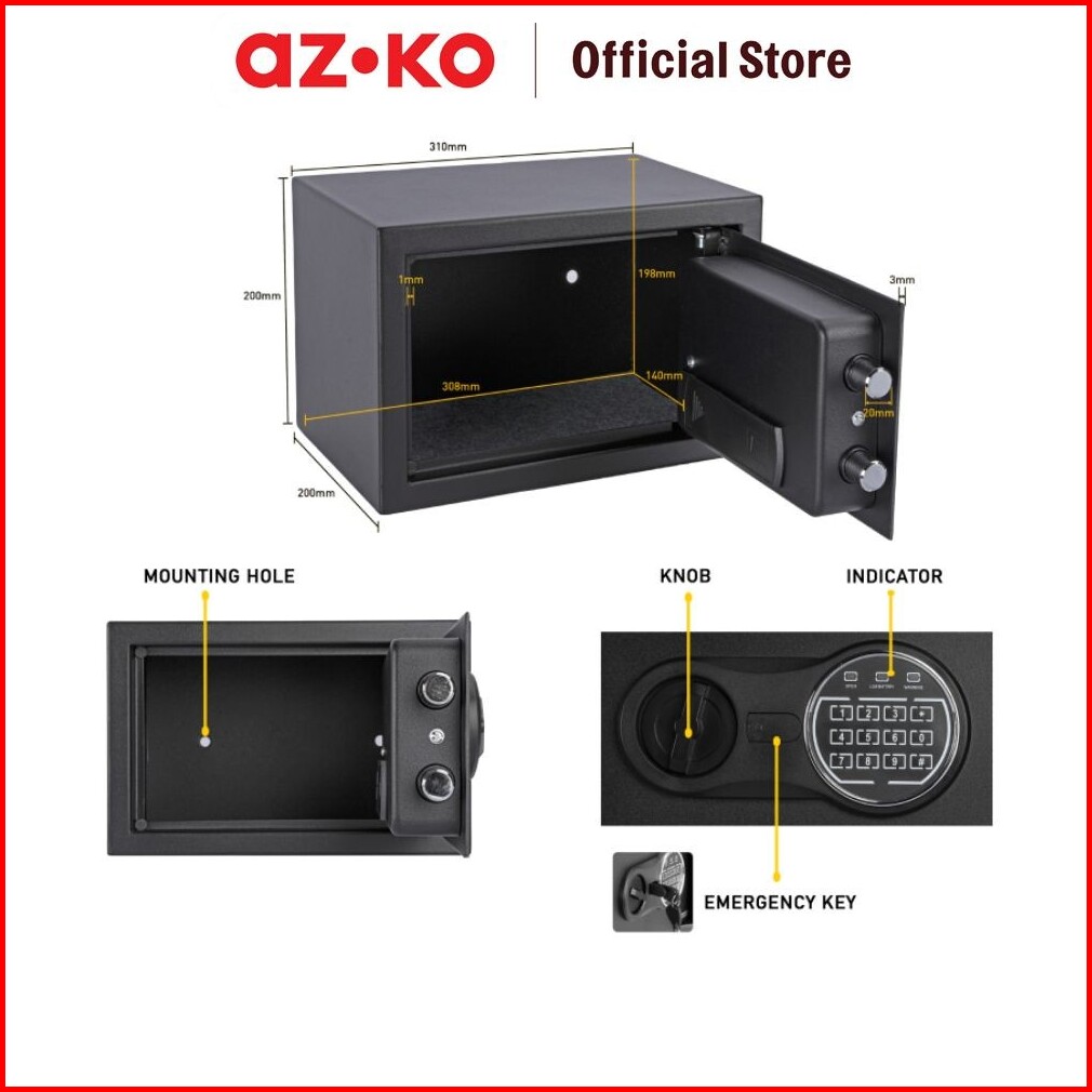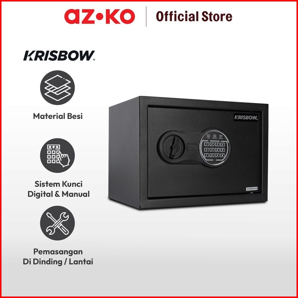 Azko Krisbow 31x20x20 Cm Brankas Besi 20sce 1 3 - Hitam Brangkas Safety Box Tempat Barang Berharga Berangkas