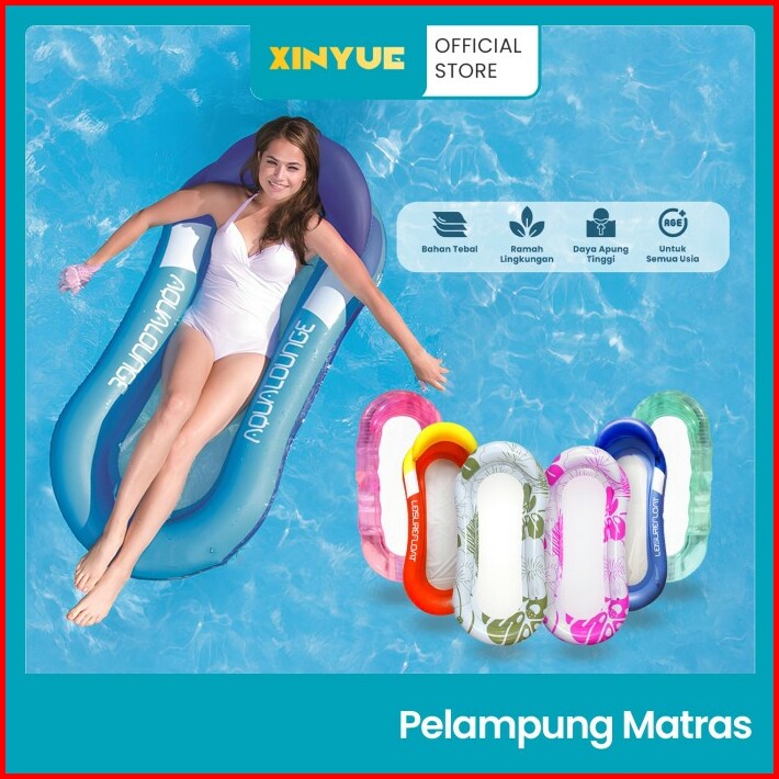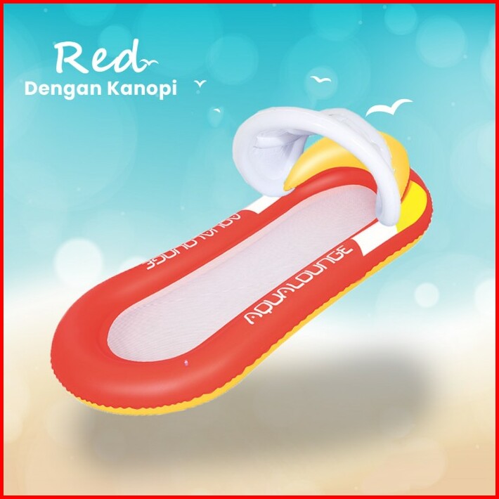 Pelampung Renang Matras Kasur Jaring Air Dewasa Kanopi Merah Dan Biru