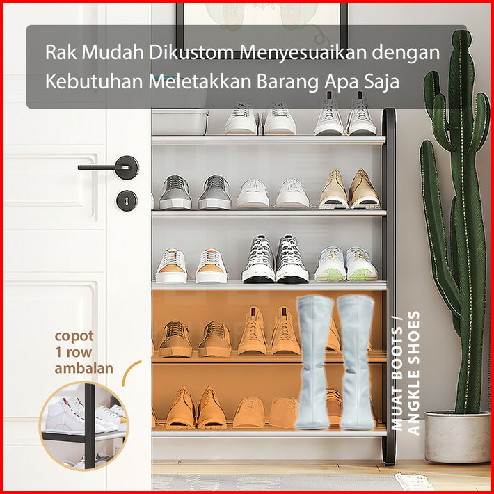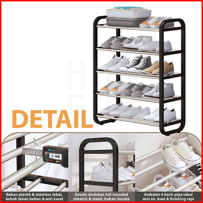 Hugo Rak Sepatu Serbaguna Portable 4 Dan 5 Susun Bahan Kuat Stainless Steel Tempat Sepatu Sandal Minimalis