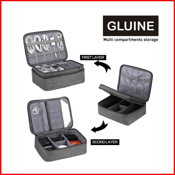 Gluine 3368 Tas Kabel Organizer Double Layer Peyimpanan Tas Gadged Aksesories Hp Powerbank Charger Kabel Electronics Org