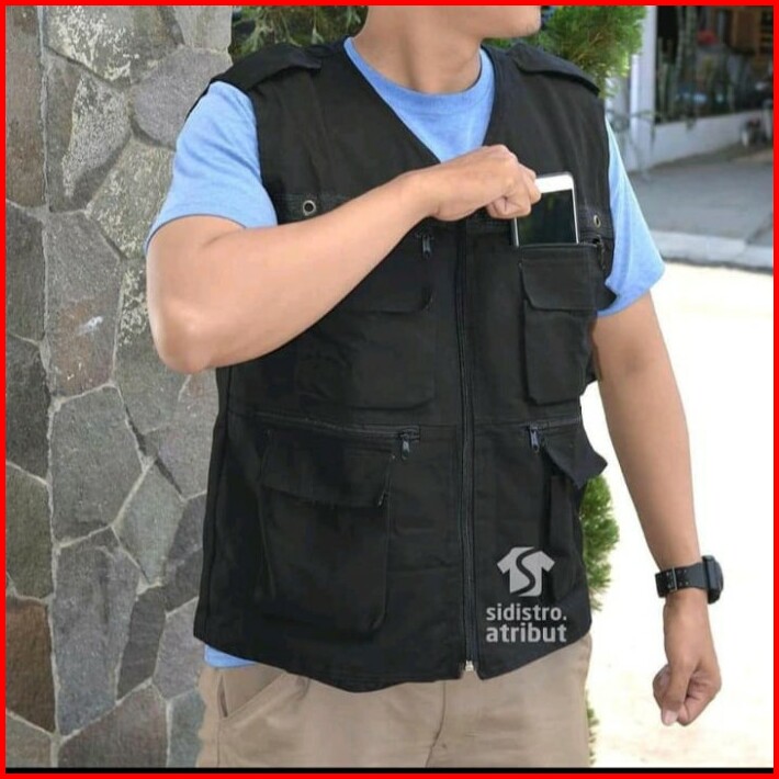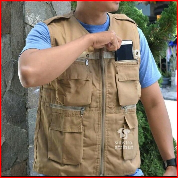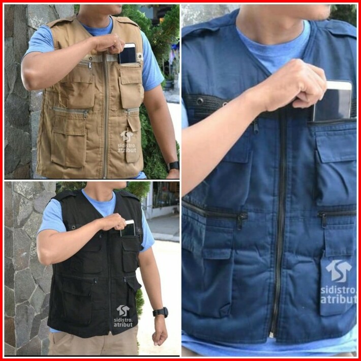Baju Rompi Lapangan Multifungsi Pria Dengan Bahan Kain Drill Dan Furing