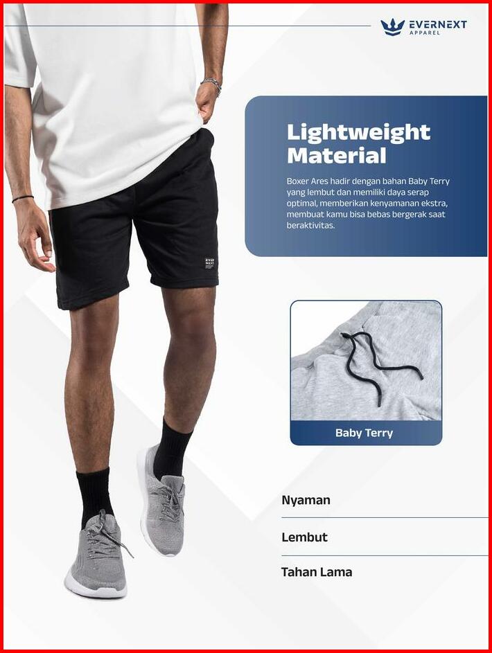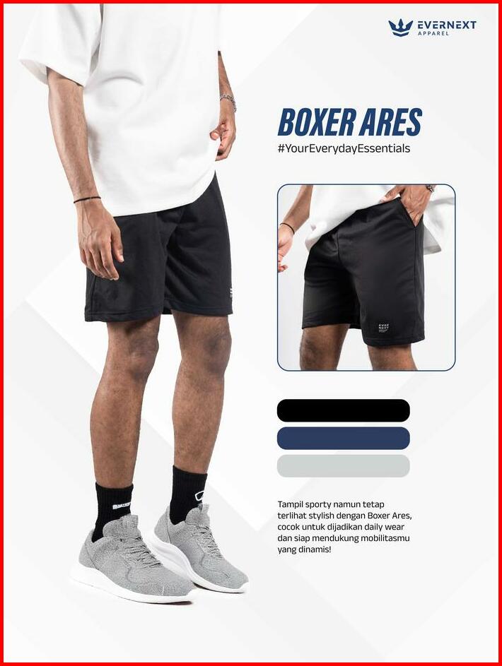 Evernext Celana Pendek Pria Celana Olahraga Santai Celana Jogging Running Celana Boxer Ares Basic Nyaman Rib Shorts