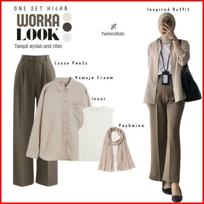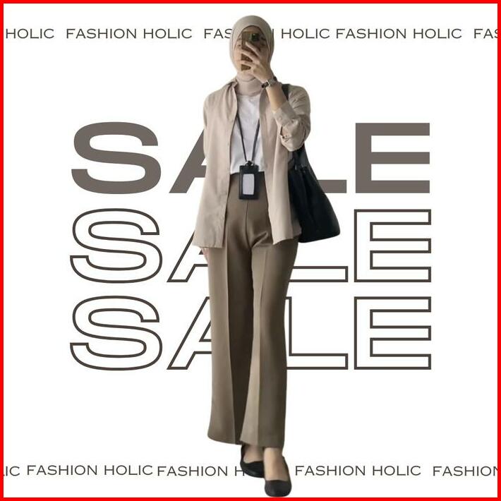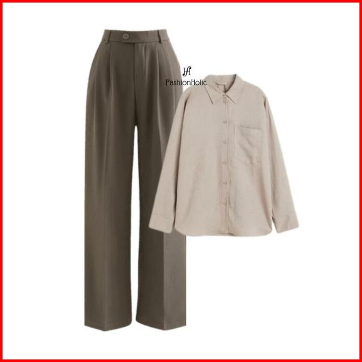 One Set Dress Korea Hijab Setelan Wanita Kerja Kemeja Wanita Kulot Kerja Polyester Pashmina Ceruty Fit Formal Muslim Pan