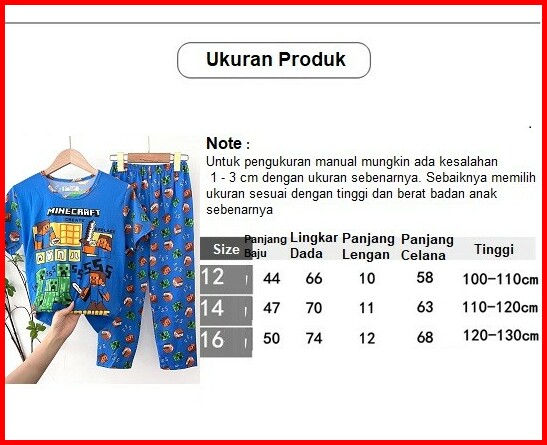 Setelan Baju Tidur Piyama Anak Roblox Minecraft